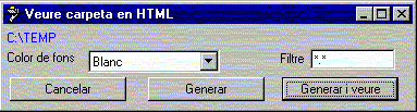 Entorns operatius: Microsoft Windows 3.1 Microsoft Windows 3.11 Microsoft Windows 95 Microsoft Windows 98 Microsoft Windows ME Microsoft Windows NT Microsoft Windows 2000 Microsoft Windows XP Per a que funcioni, cal especificar-li la ruta del directori/carpeta a presentar. La manera mes comoda d'utilitzar l'eina es colocar-ne un enllaç (acces directe) a la carpeta "SendTo" ('Enviar a') del Windows. D'aquesta manera, assenyalant una carpeta amb el ratolí, amb el menú contextual és possible generar la pàgina HTML